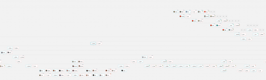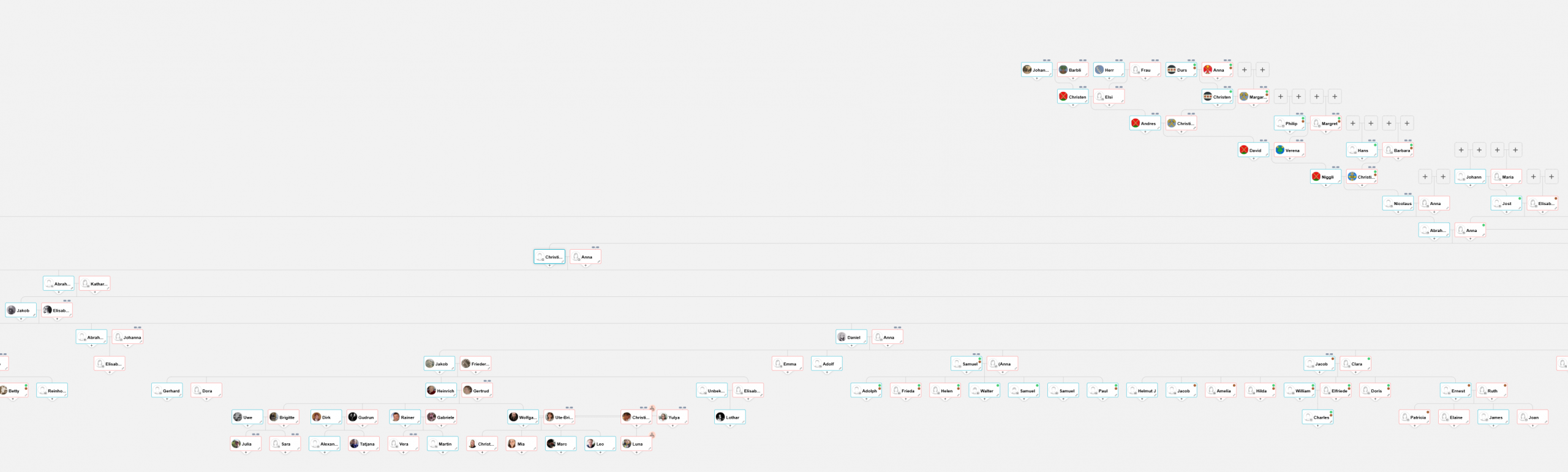 Manch einer kann mehr mit Stammbäumen anfangen. Die Verzweigung ist so groß, daß das alles kaum auf ein Blatt paßt, daher mehrere Blätter, die Du am Besten am PC anschaust, weil Du dort das Bild verschieben kannst und mit SCROLL hinein- und hinauszoomen kannst.